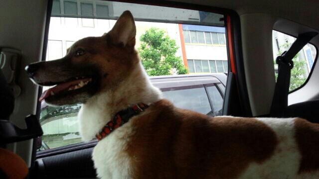 車で留守番してたサス坊はご立腹でした。
