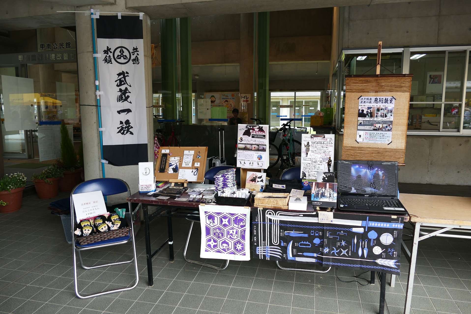 忍術教室のチラシに、一族PV上映、一族本展示とチラシ設置!!