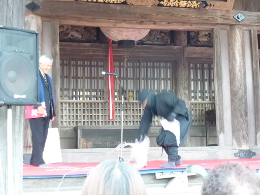 コジソンさんがブーメラン手裏剣で観客さんをびびらせたり