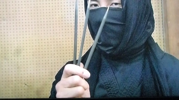冒頭部で、苦無演武を披露する組頭・蒼志さま