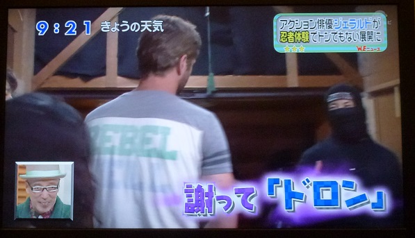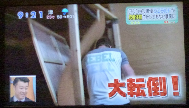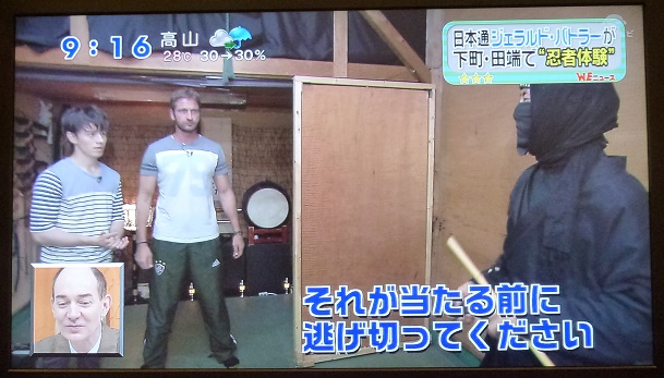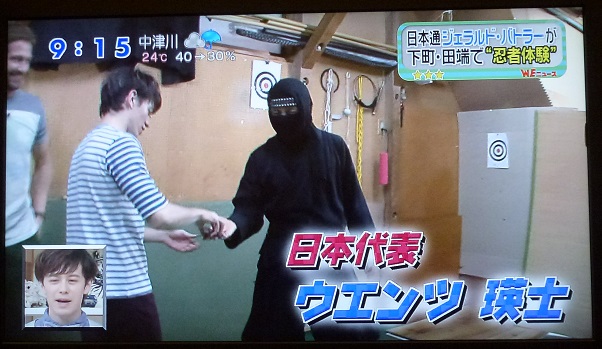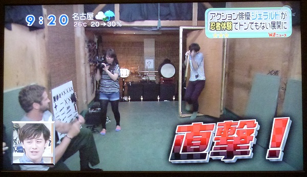 登場したウエンツさんに手裏剣(ゴム)を投げつけるジェラルドさん
