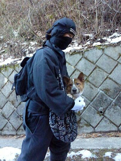 袋には慣れっこの甘えん坊サスケ。
