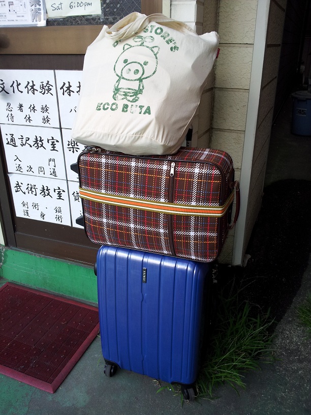 衣装や小物をキャリーバッグに詰める詰める。