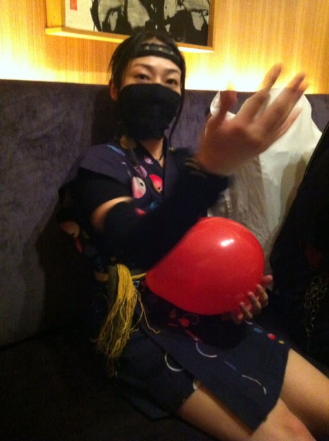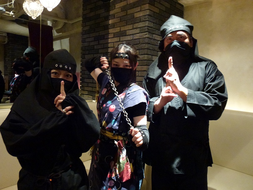 お客様には、忍者装束と吹き矢の体験をして頂きました。